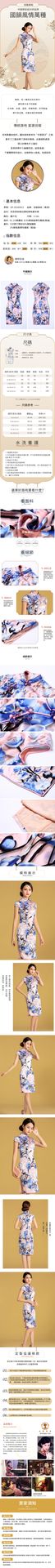 彩裳桑蠶絲數碼花斜襟改良長旗袍連衣裙